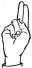 На ћирилици написано БОРИС ЈОВЕЉИЋ састоји се из 12 слова [?]. Исписано ћириличном једноручном азбуком за глувонеме: